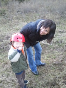 Little Dude insisted upon wearing his helmet for the entire walk.