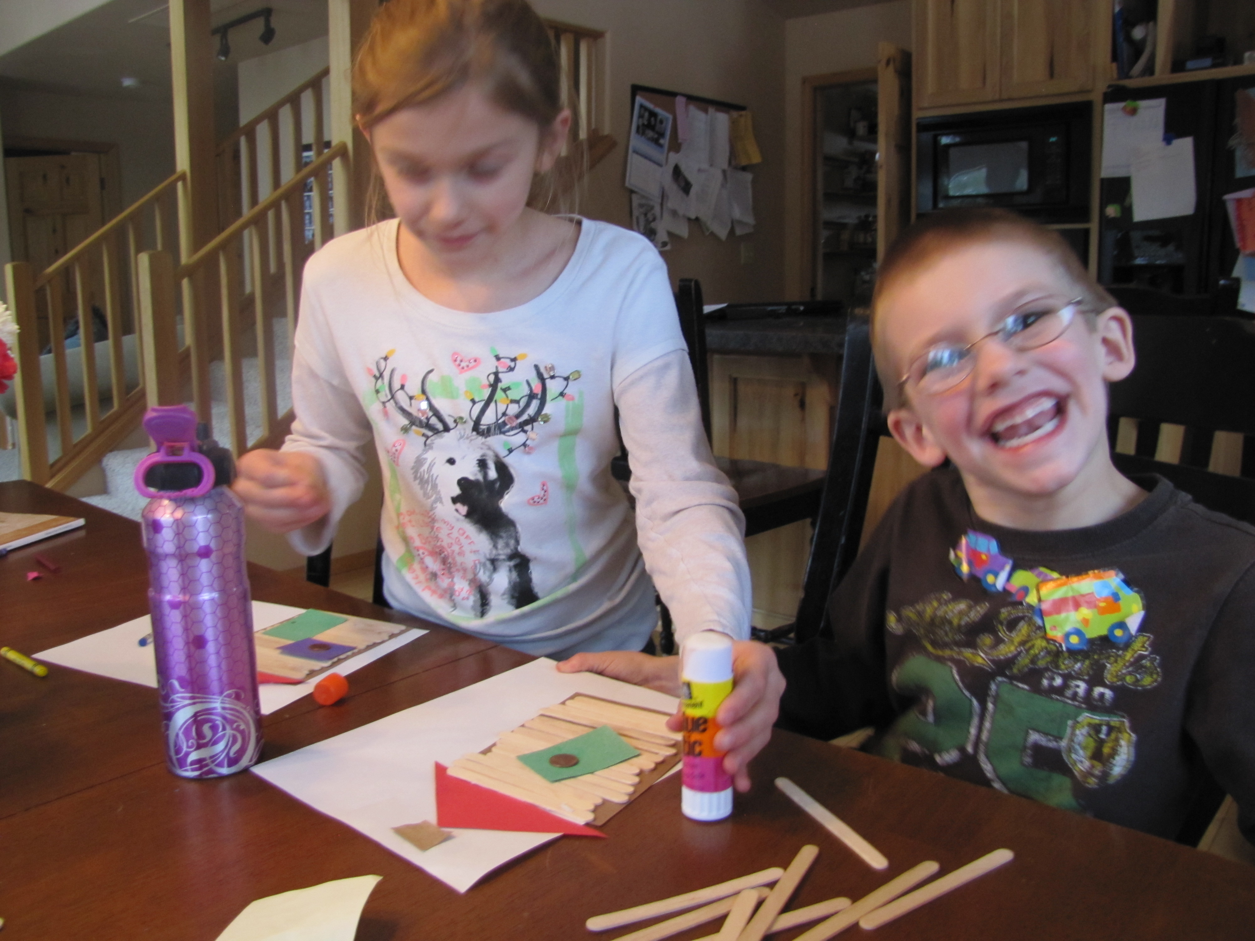 The kids had fun making their log cabins, and I felt like I earned my Homeschooling Mom Gold Star for the Week.  I felt so good, I even decided to skip Latin.  Because who needs Latin anyways?  Not us.