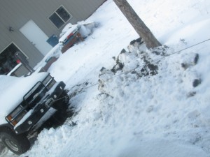 He hath loosed himself from the treacherous snow and was off to do . . . whatever it is he was doing.  Which was certainly not plowing, since that is nowhere near the driveway my friends.
