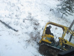 As he was trying to pull the dozer out of the snow, I noticed the dozer tipping.  I totally thought it was going to fall over and crush him.  But every time I rush out there with my safety concerns, he laughs at my foolishness and says: