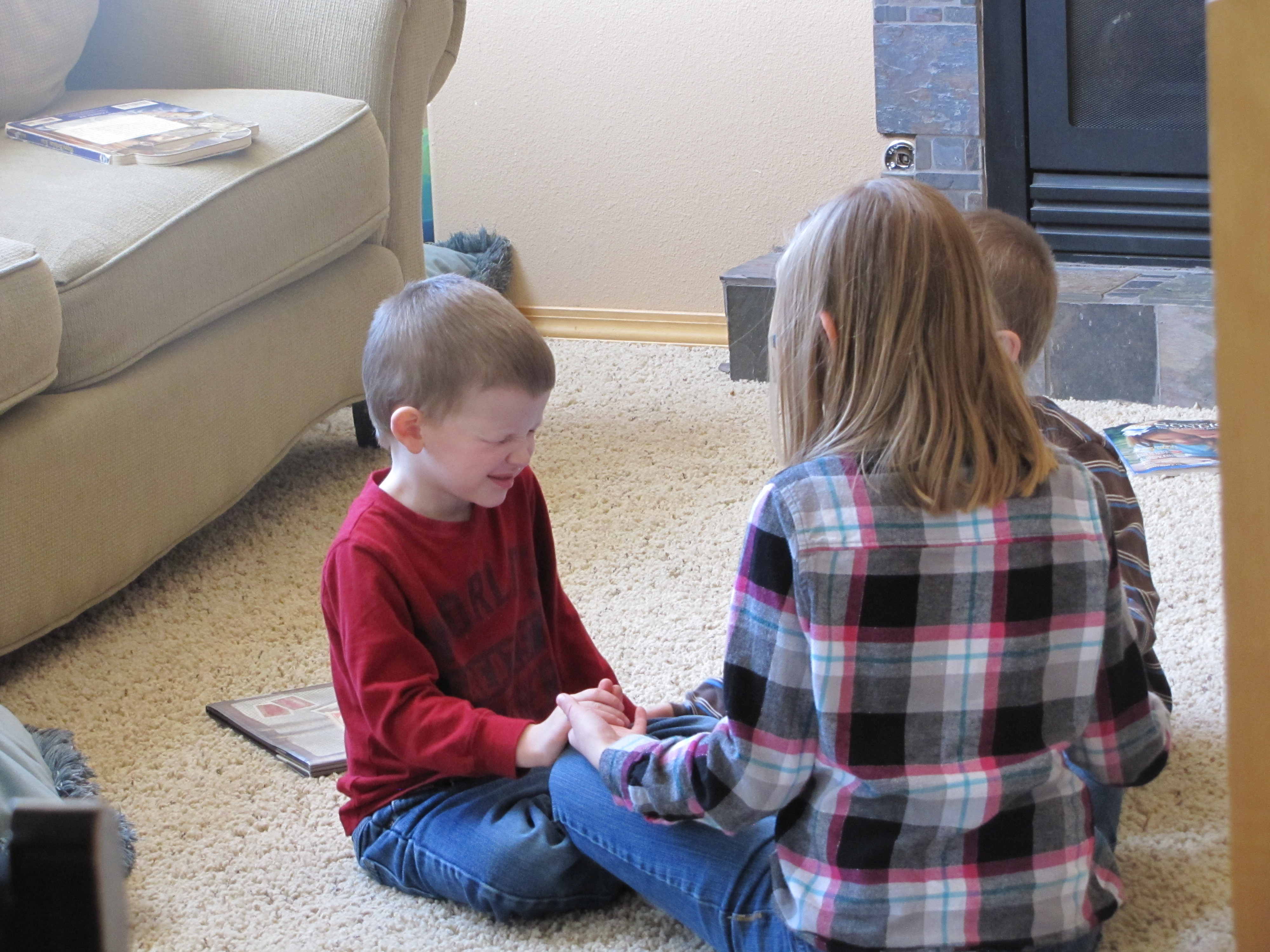 As I was cleaning and feeling generally sorry for myself, Sweet Pea, bless her heart, entertained the boys with stories, songs, and prayer time.  Because she is trying to do a better job than I, apparently, with the rearing of the boys.