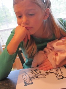 (I give you this advice in all sincerity. I am always pointing out to my kids what I am teaching myself, so they can see what it’s like. I’ve taught myself how to knit, crochet, make bread, cook, use Photoshop….all kinds of things. I don’t sugar coat the learning process – since they are with me all day, they see me struggle, fail, try again, succeed, concentrate, research, etc. Modeling these things is just as important as mastering stupid skip counting. Right?)