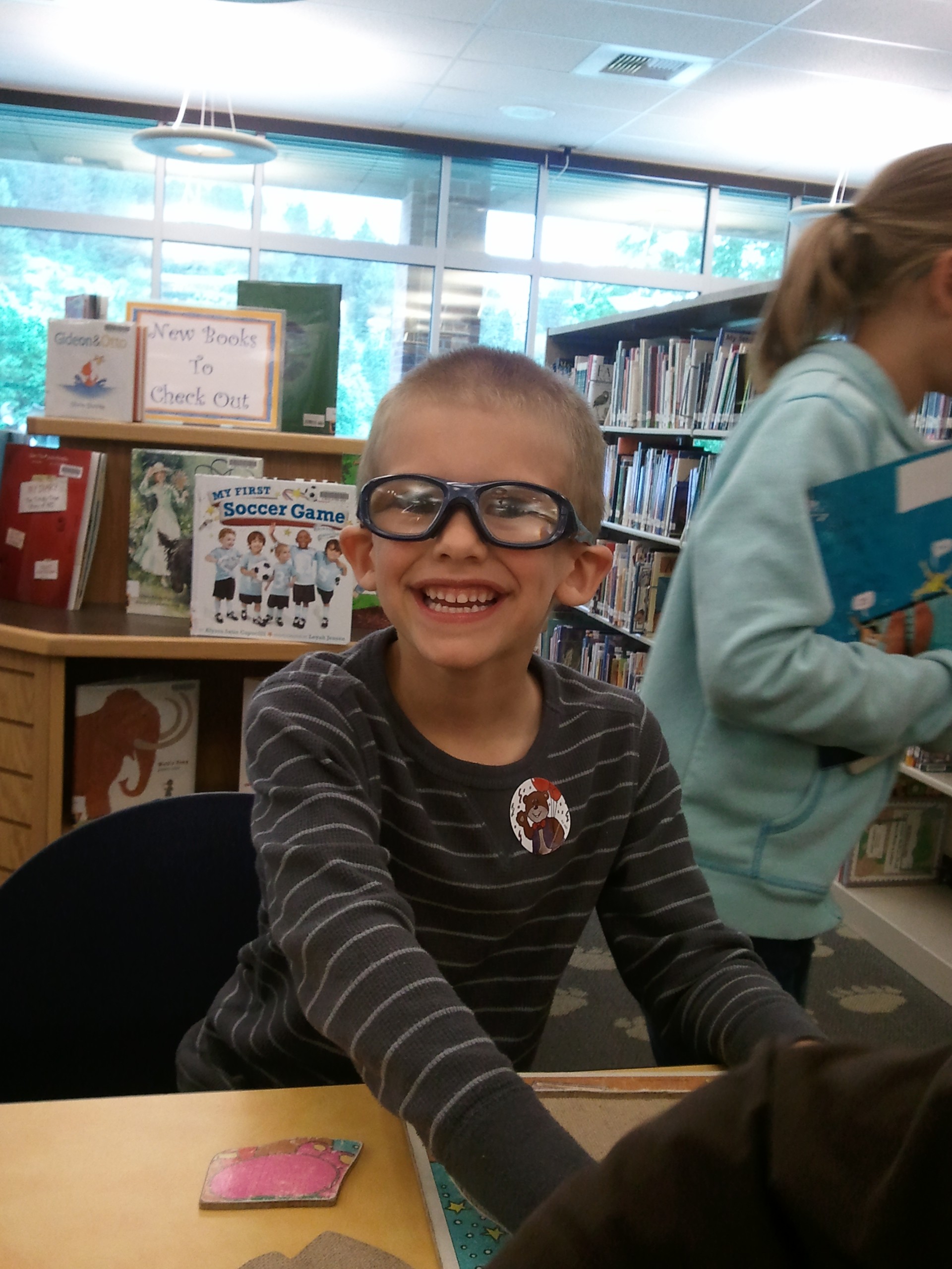 We have not had to take Handsome Dude in since he got his new spaceman glasses in May.