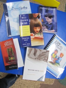 So-The Well-Trained Mind is a guide. I use First Language Lessons for grammar, Writing with Ease for writing, The Story of the World for history (we are starting with book one-The Ancients), All about Spelling for Spelling, Artistic Pursuits for Art.